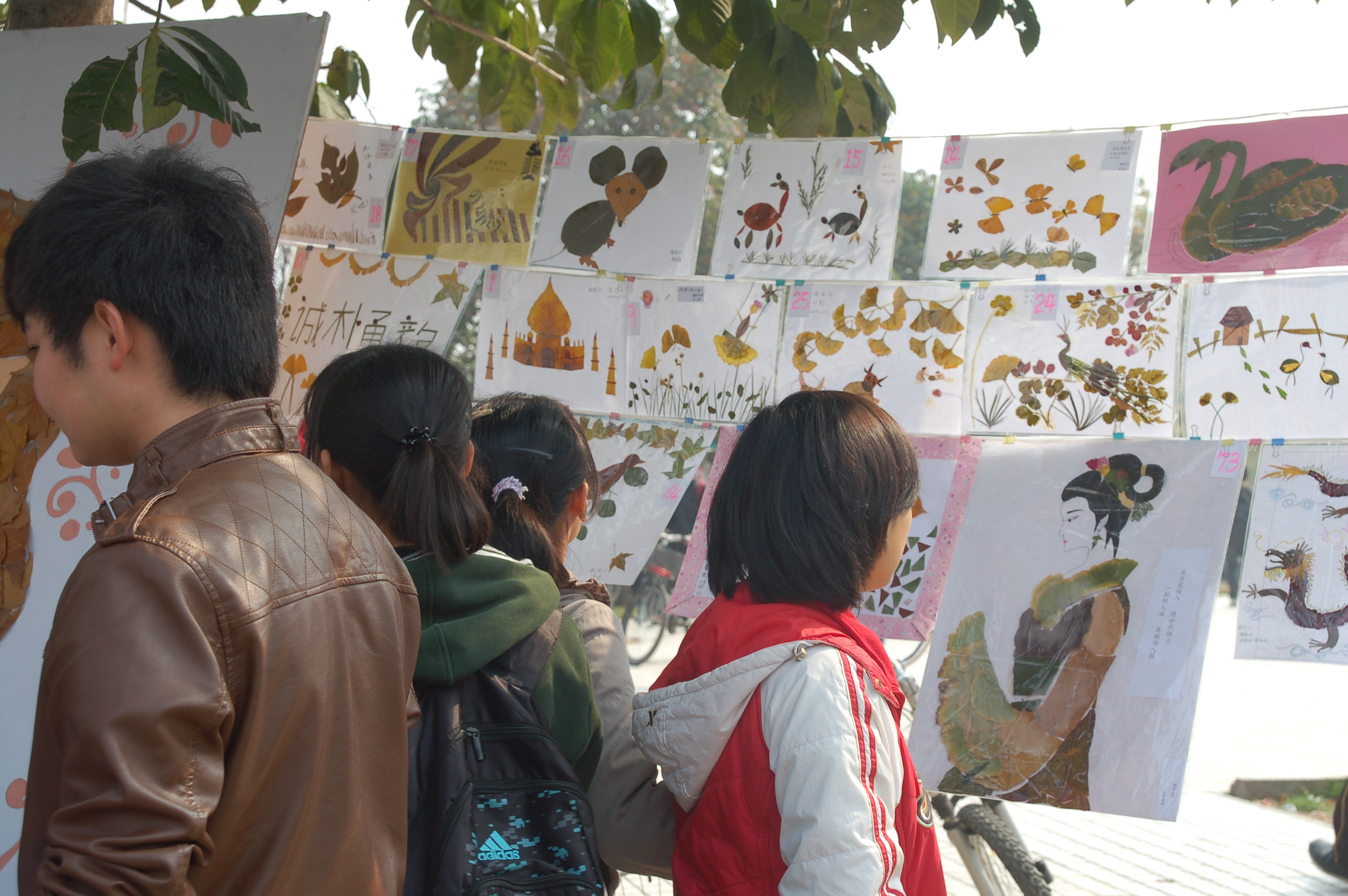 活动过程中,不少同学均在感叹用那不起眼的落叶竟然可以拼凑出这么漂亮的图案,不少同学甚至用手去触摸拼图,感受落叶重新释放的艺术气息。在秋天这个诗情画意的季节里,同学们抛开了黛玉葬花的伤感,加上自己天马行空的创意,拾起那片片落叶来展现樱花小说 的专业特色,让那些飘零的树叶重新绽放了它们的生命。叶子在同学们创造性的思维中再度飘扬,本次画展向全校同学们呈现了一场非凡的视觉盛宴!
