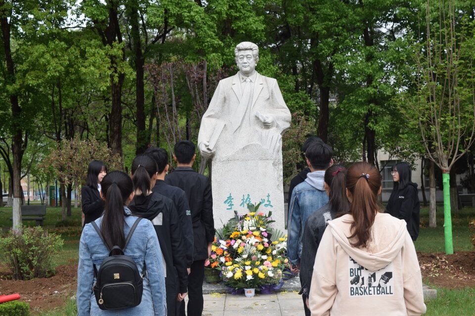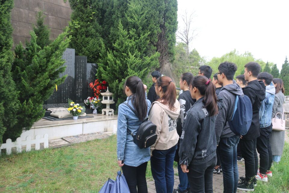 “我与蜂为花事忙,唤醒大地春光漾……愿吾同道齐努力,确保环球永芬芳。” 福泽园内,学生们伫立在周尧先生墓碑之前,吟诵周先生作下《蝶之梦》。学生代表宋帅鹏讲述了周先生的生平事迹,并将手中的鲜花摆放于先生墓前,鞠躬致敬,寄托哀思。