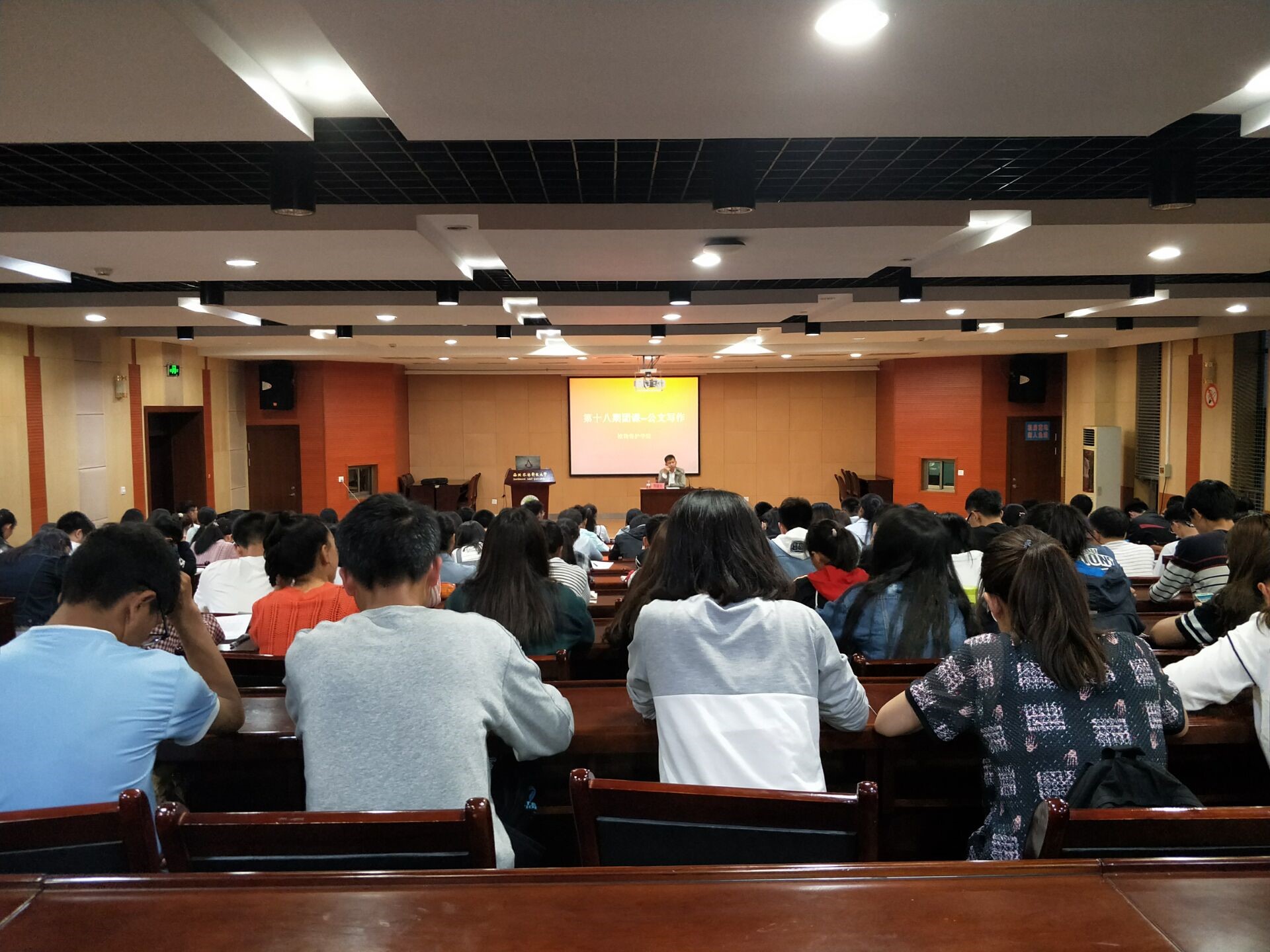 2018年4月18日19:30,为增强大学生公文写作水平,提升学生综合素养能力,樱花小说 于北绣南报告厅举办了第十八期团分校理论课——《公文写作》。校党委宣传部副部长郭建东老师,樱花小说 团工委书记高晴老师出席会议,樱花小说 2017级全体成员参加此次团课。