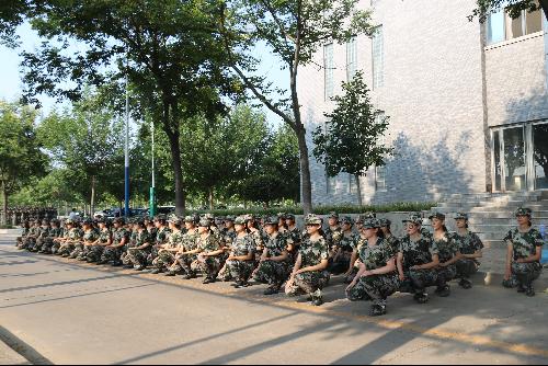 涔涔的汗水浸湿了同学们的衣领,桶装水很快便被取饮殆尽。经历了一天的训练,同学们虽然非常疲惫,但在接受采访时,仍然笑着说:“军训虽然很累,但也很充实、很开心。”还有同学说:“军训中,我就是一名军人,再苦再累也是为国为民,都是值得的。”每一位植保学子都以军人的身份站在训练场上,向骄阳和蓝天展示着西农人的勇敢和坚毅。